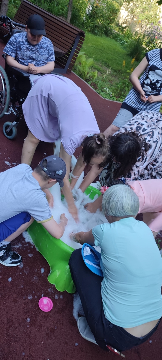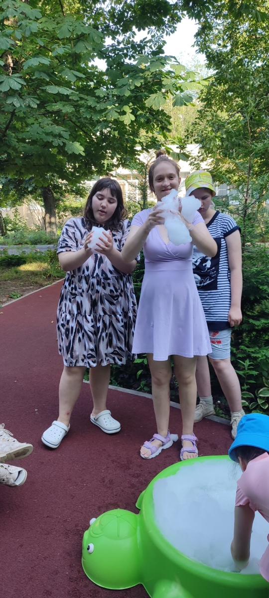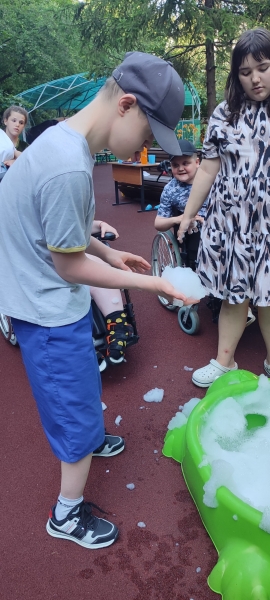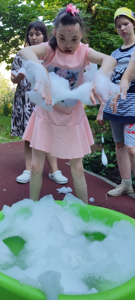 Изучение ребеноком пены, его тактильные ощущения на кончиках пальцев, пенные бои, - все это дарит невероятные эмоции нашим воспитанникам, прекрасно разгружает нервную систему и делает летние развлечения еще более разнообразными!