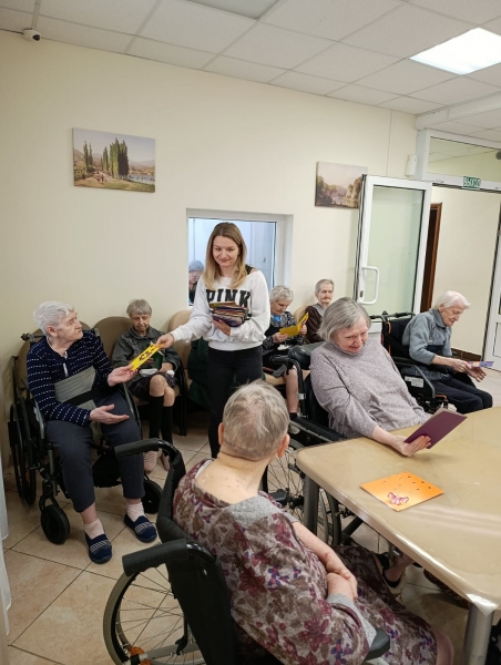 Мы лично вручили каждому открытку, сделанную руками наших жителей. Это дорогого стоит – видеть, как меняются лица людей, когда к ним приходят гости с подарками и добрыми словами. Такие моменты напоминают, что забота и взаимопомощь – это то, что объединяет поколения и делает нас человечнее.