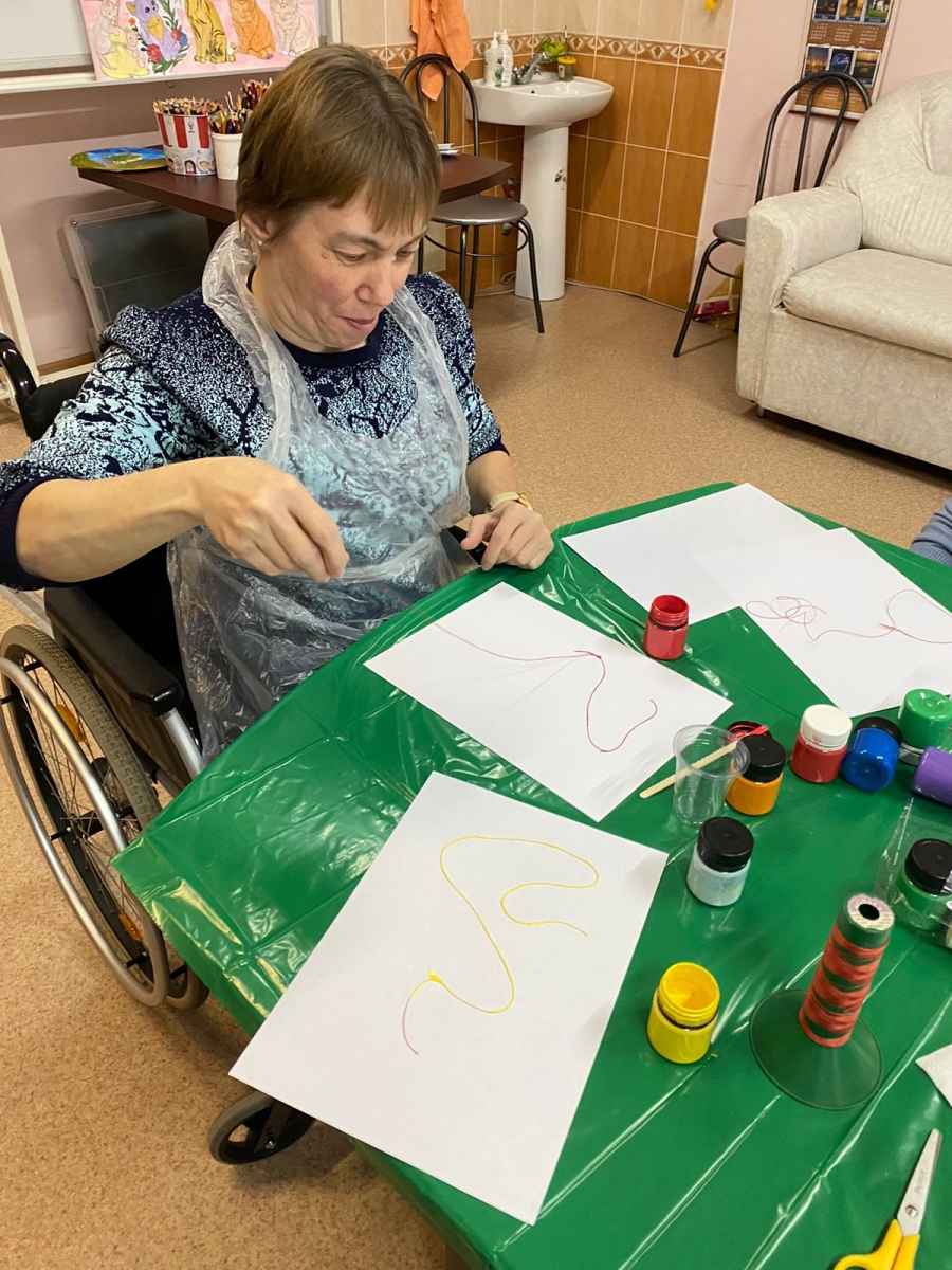 Когда нить встречается с краской, рождается чудо! Наше занятие по арт-терапии было посвящено удивительной технике «ниткография».