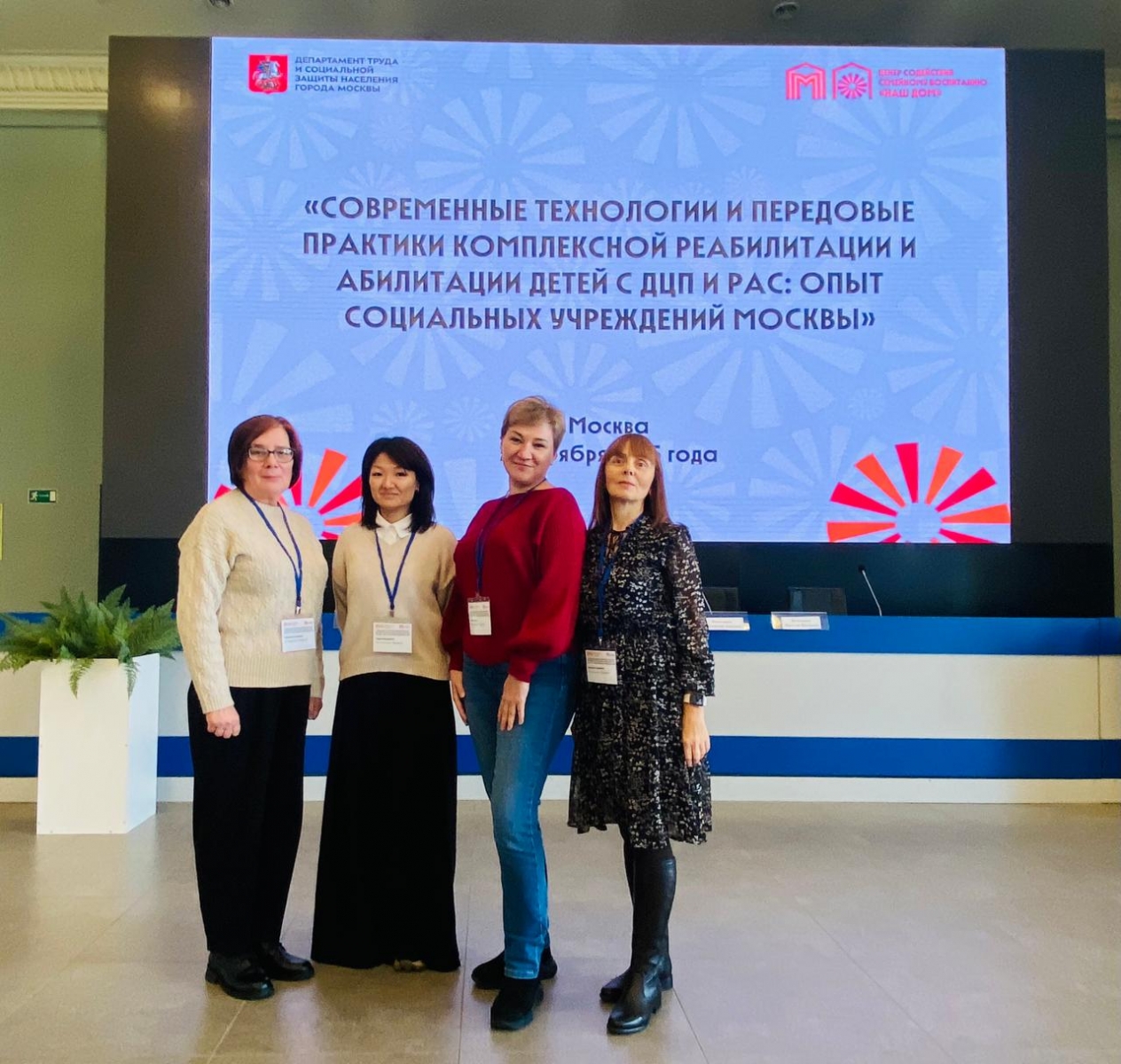 20 ноября мультидисциплинарная команда сотрудников филиала "Беляево" Социального дома "Обручевский" приняла участие в городском интерактивном методическом мероприятии "Современные технологии и передовые практики комплексной реабилитации и абилитации детей с ДЦП и РАС: опыт социальных учреждений Москвы". Организаторы встречи - ДТСЗН и ГБУ ЦССВ "Наш Дом". Первая часть мероприятия была представлена практикумом "Синергия опыта".