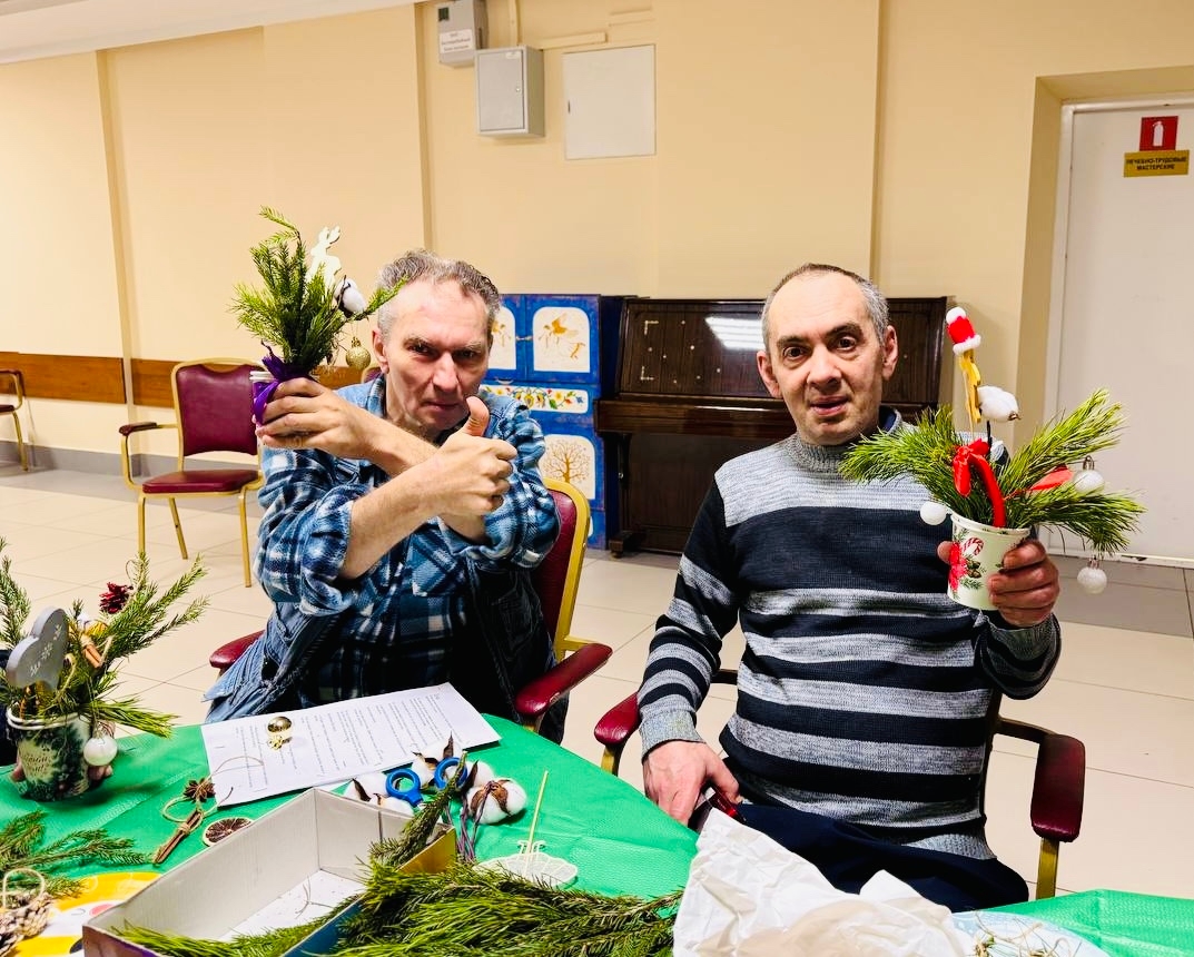Этот творческий процесс прошёл в приятной, дружеской атмосфере, что позволило каждому жителю почувствовать себя частью общей творческой команды. Получившиеся новогодние композиции стали не только красивым элементом интерьера, но и источником вдохновения для дальнейшего развития художественных навыков.