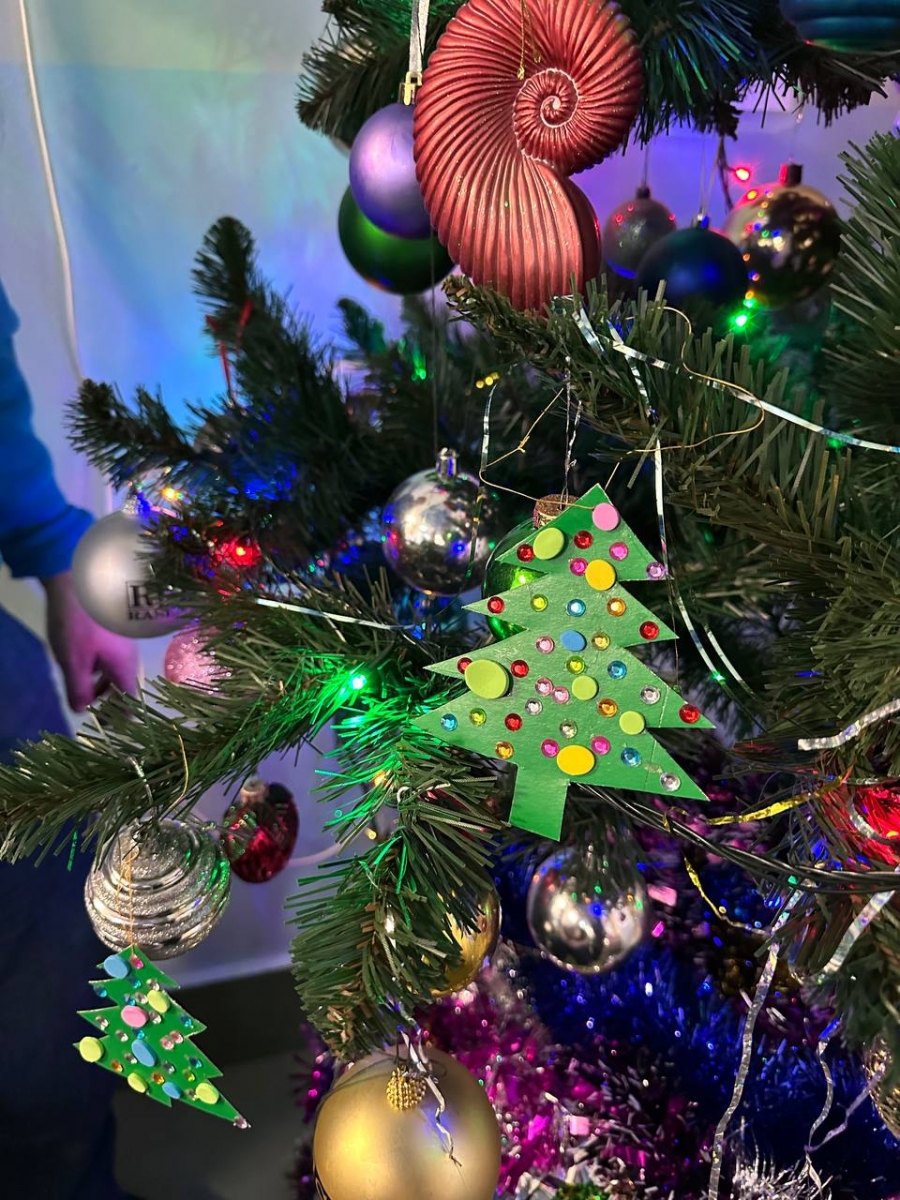 Участникам было предложено своими руками изготовить ёлочные игрушки из доступных материалов: цветного картона, бумаги, клея и декоративных блёсток. Под чутким руководством сотрудников наши жители с энтузиазмом вырезали, клеили и украшали, создавая яркие и индивидуальные украшения для общей новогодней ёлки.