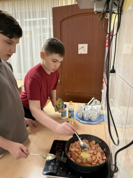 Проект "Пока все дома" в филиале «Беляево» продолжает свое развитие и набирает обороты. Воспитатель Тарасова Наталья Игоревна со старшими воспитанниками приготовили макароны с жареными сосисками, луком и морковью. Изобретать новые блюда из простых и привычных продуктов - это дело интересное и творческое!