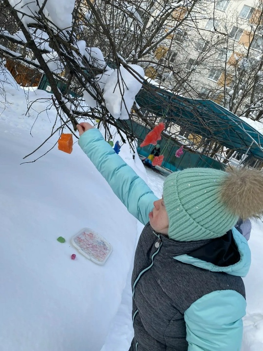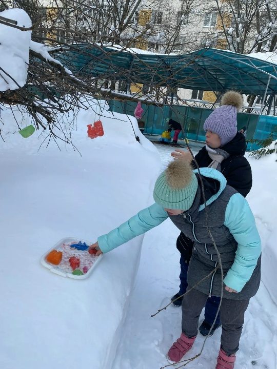 В рамках зимнего мини-проекта «Свойства воды» педагоги Оноприенко Т.В. и Пуга М.П. изучают с воспитанниками агрегатные состояния воды опытным путем. Целый ряд занятий был посвящен этой теме. Девочки замораживали в холодильнике чистую и окрашенную воду в различных формочках. Получились яркие разноцветные льдинки, которыми они украсили деревья на улице. Вторым этапом эксперимента воспитанницы красили воду и рисовали красками на снегу. Как на белом холсте появились яркие картины. Такие интегрированные занятия - это и творчество, и познание окружающего мира. Они способствуют снятию тревожности и получению положительных эмоций.