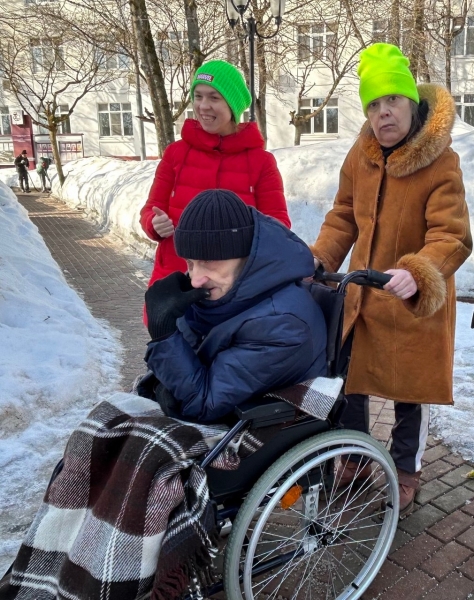 Ребята из Зюзино помогают друзьям выйти на улицу, разговаривают и дышат вместе свежим воздухом, наслаждаются солнцем и просто приятно проводят время в парке.