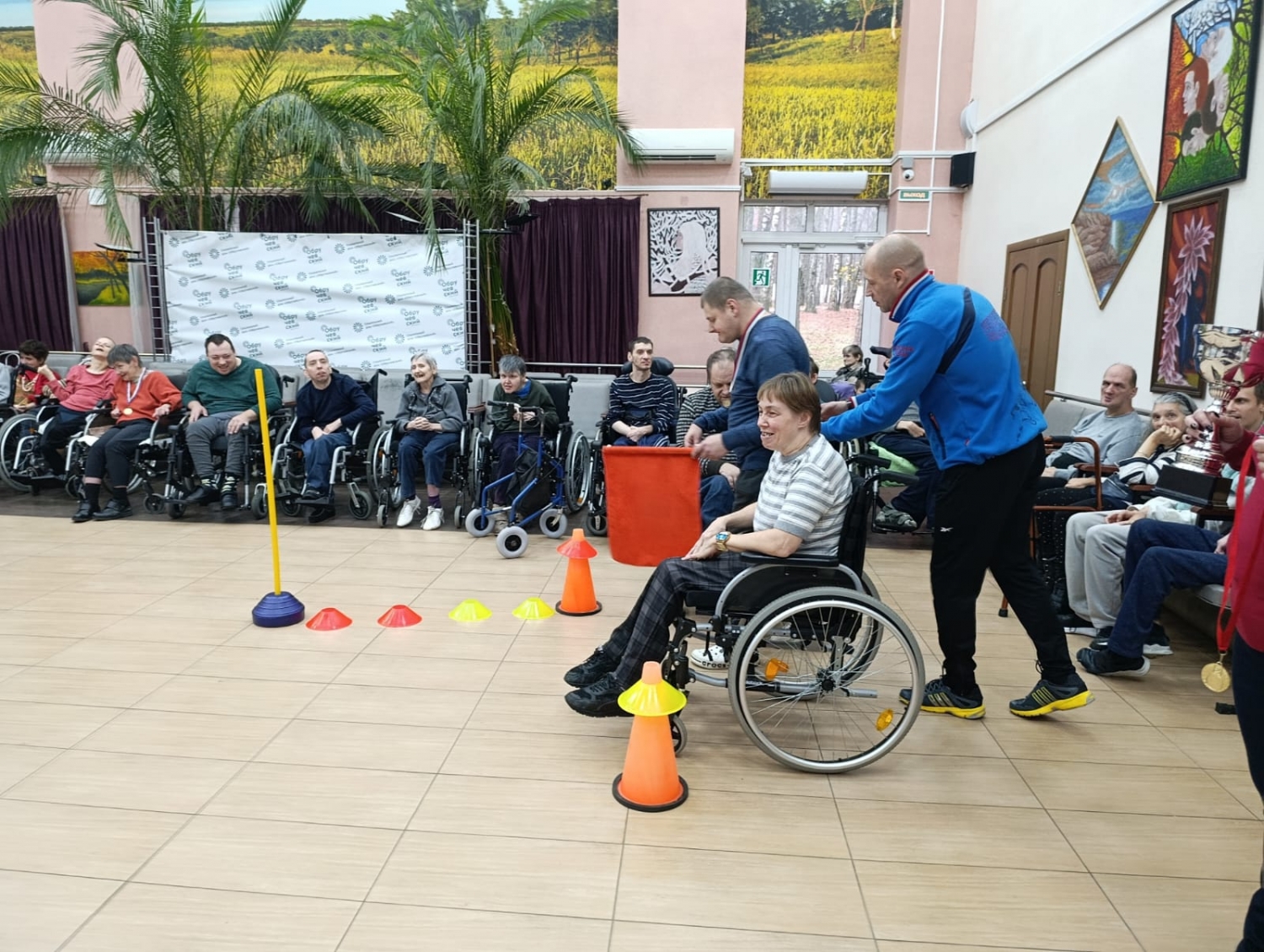 В Социальном доме «Обручевский» прошли захватывающие соревнования по слалому на колясках