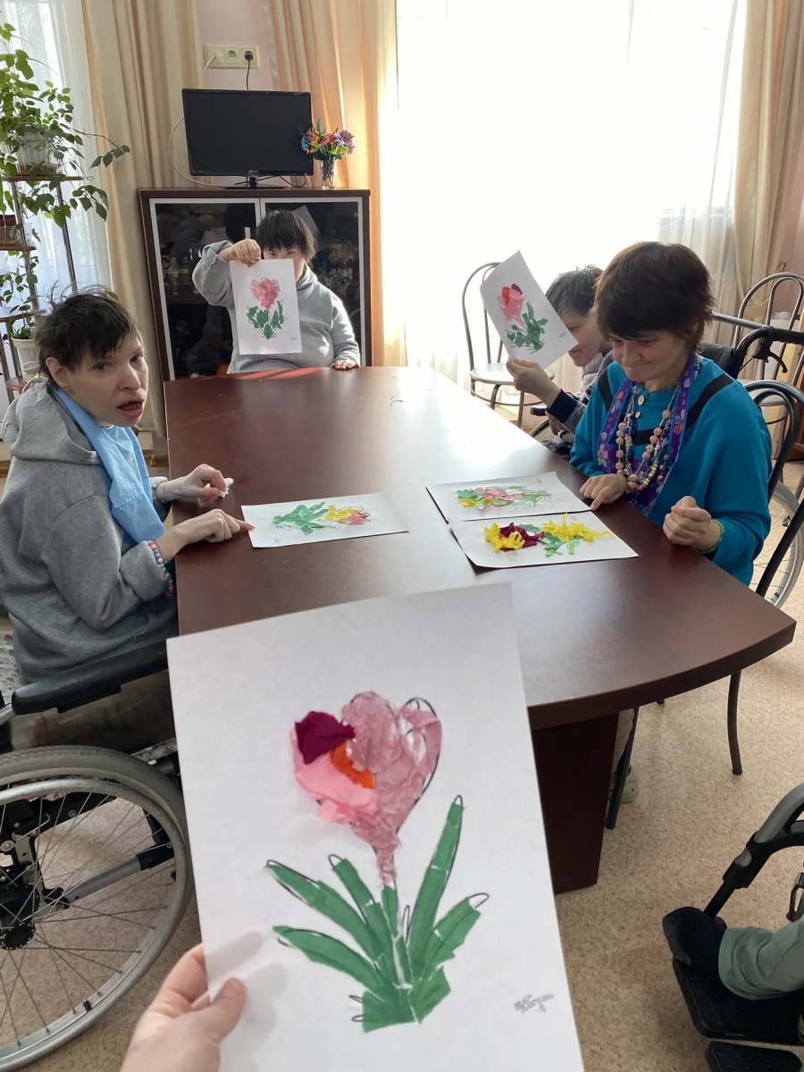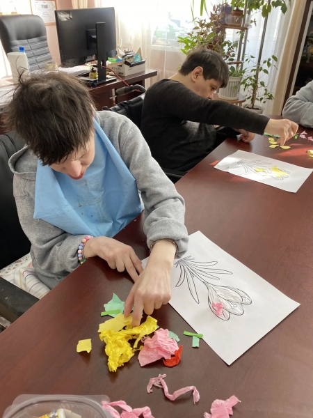 В нашем уютном доме прошло необычное творческое занятие. Наши дорогие жители создавали яркие летние цветы в технике отрывной (обрывной) мозаики.
