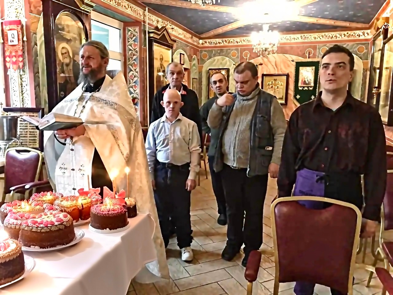 В домовом храме филиала «Зюзино» отец Фаддей провел обряд освящения пасхальных куличей и яиц, наполнив наш дом благословением и радостью.