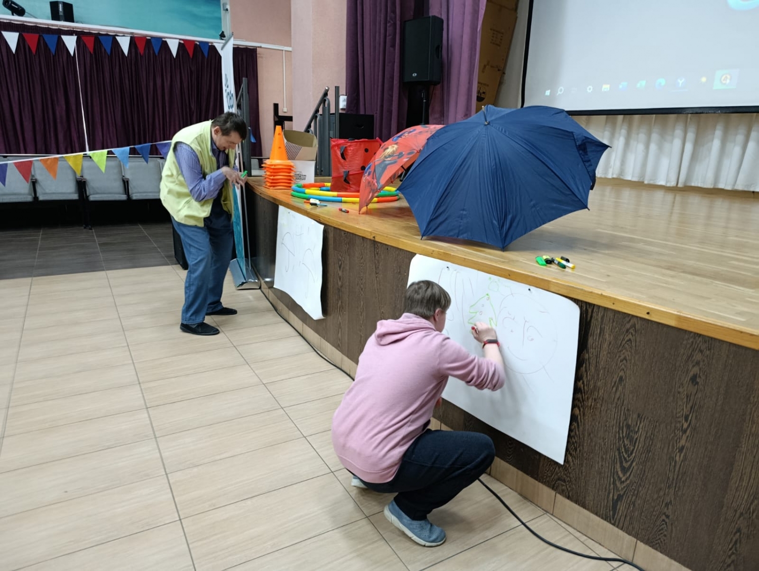 Представьте: яркие костюмы, азартные эстафеты и творческие конкурсы. Участники лихо бежали под разноцветными зонтиками, создавали коллективные осенние пейзажи, а главное — от души поддерживали друг друга.