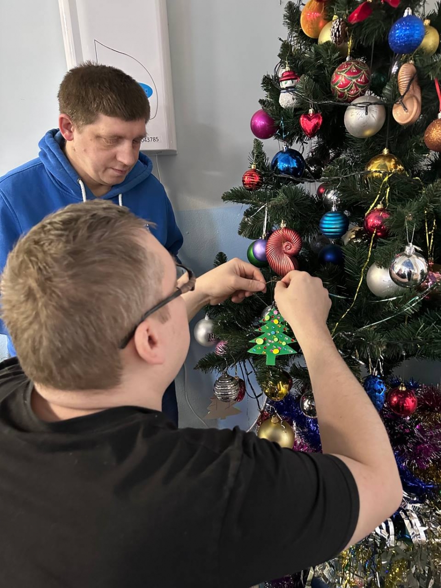Участникам было предложено своими руками изготовить ёлочные игрушки из доступных материалов: цветного картона, бумаги, клея и декоративных блёсток. Под чутким руководством сотрудников наши жители с энтузиазмом вырезали, клеили и украшали, создавая яркие и индивидуальные украшения для общей новогодней ёлки.