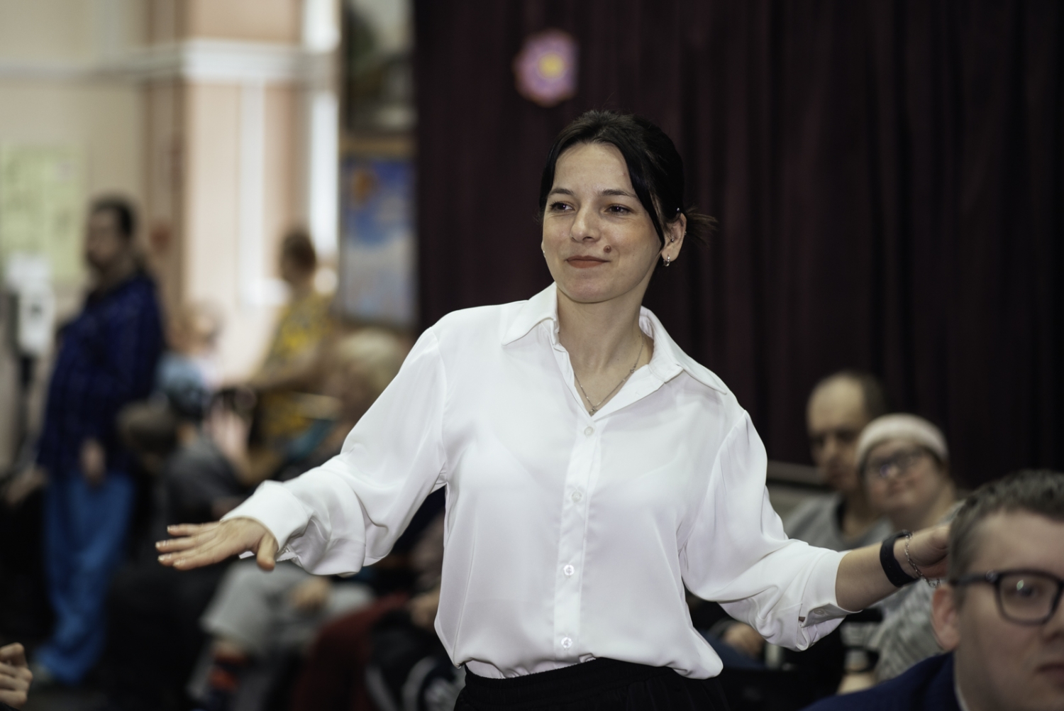 Концертная программа получилась яркой и разнообразной. Зрителей порадовали творческие номера, подготовленные самими жителями. Со сцены звучали любимые песни, которые с душой исполняли наши талантливые артисты. Особый колорит вечеру добавили зажигательные русские народные танцы, а также неожиданный и веселый номер — танец ковбоев, который вызвал улыбки и бурные аплодисменты в зале. Украшением праздника стала веселая музыкальная сценка, подарившая всем зрителям хорошее настроение.