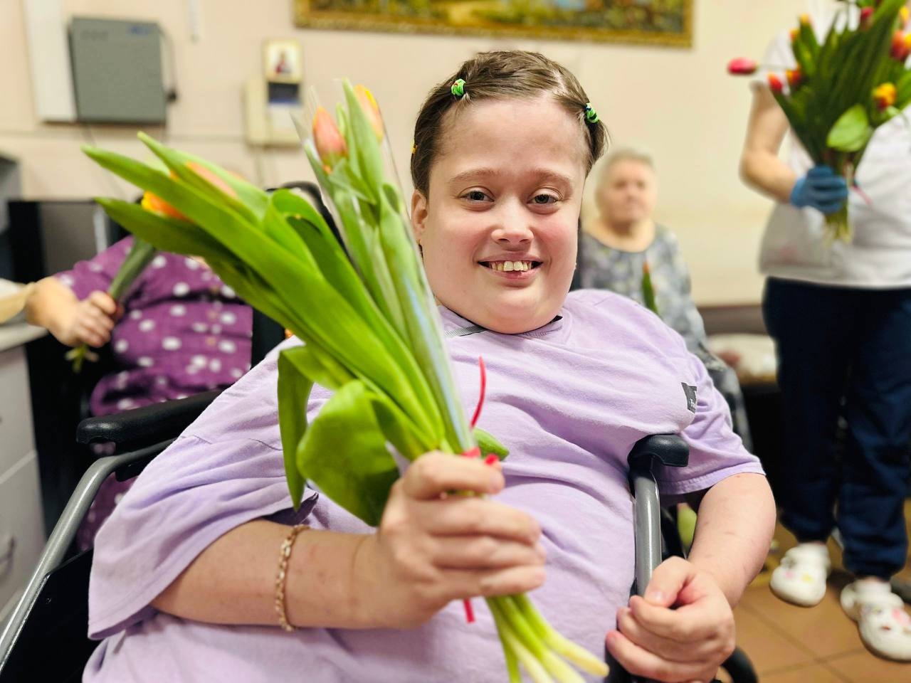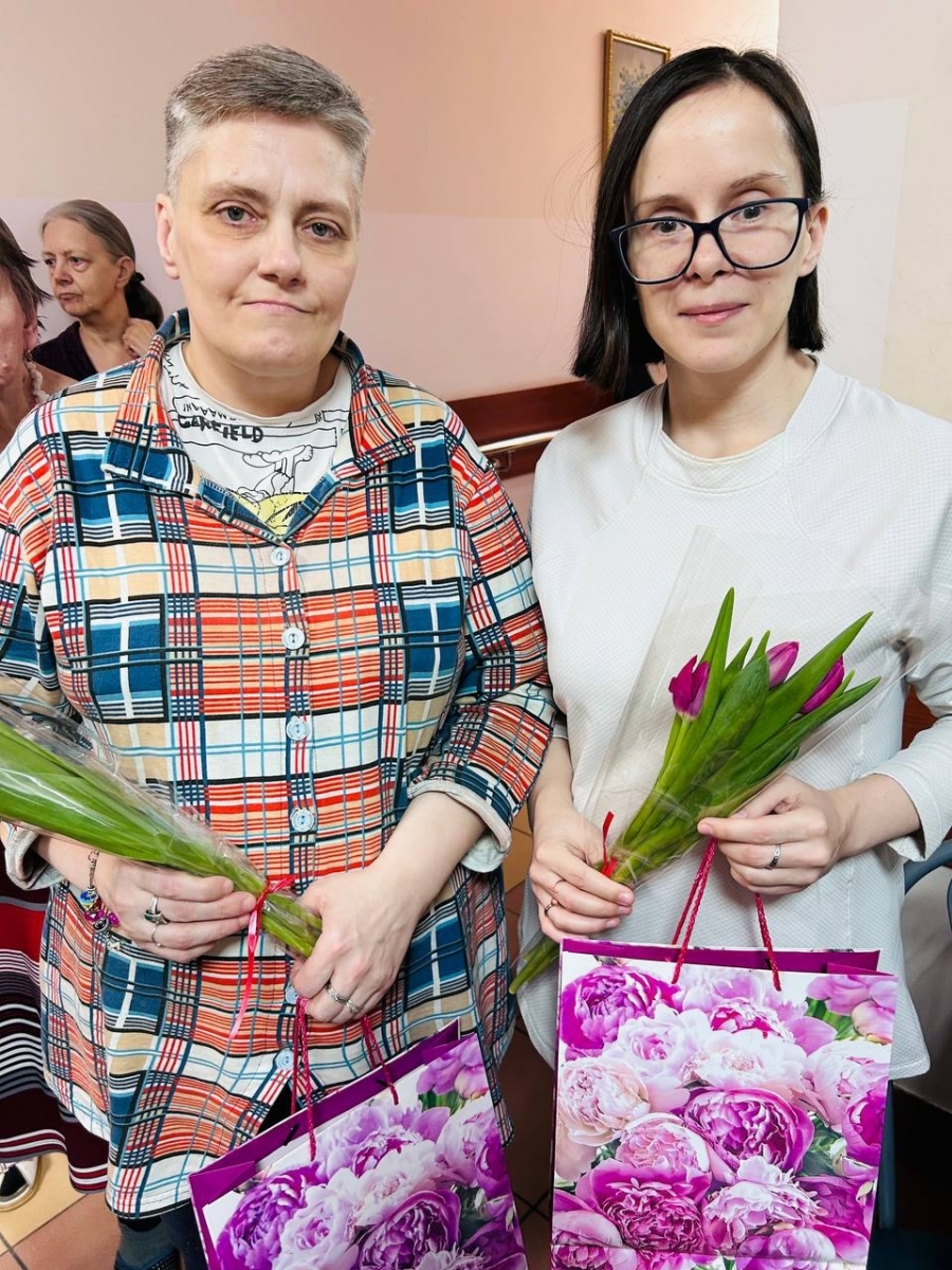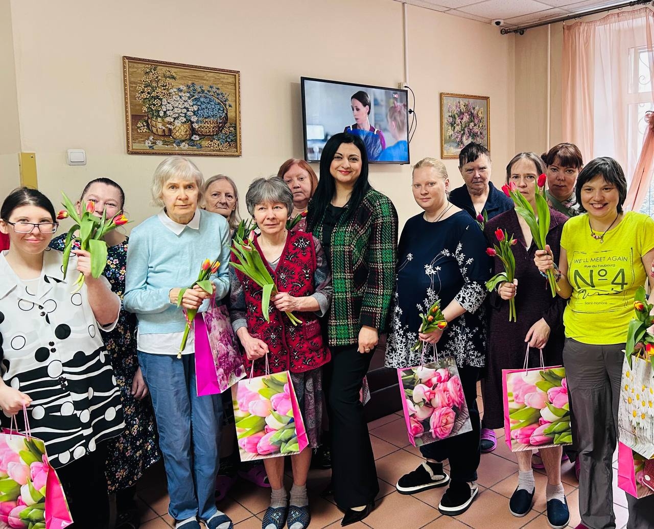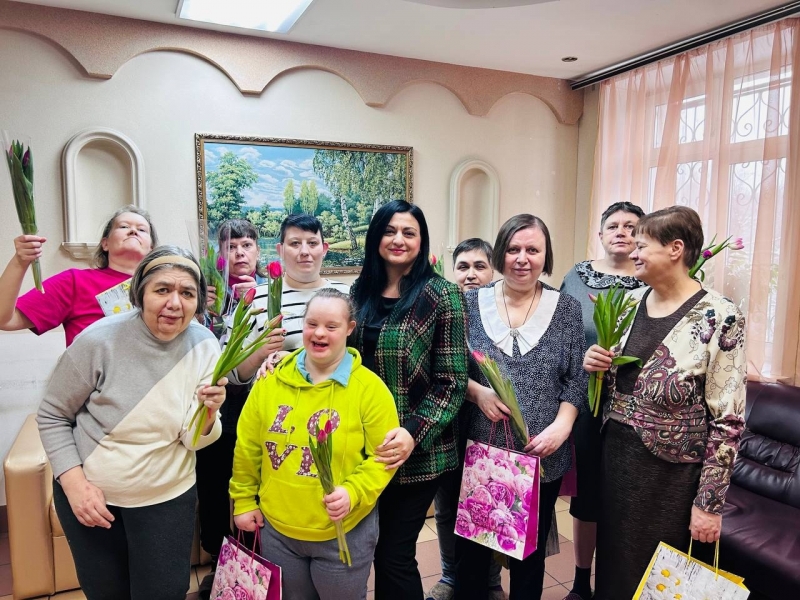 Заведующий филиалом «Зюзино» Кристина Размиковна Гаспарян вместе с сотрудниками социально-реабилитационного отделения поздравили наших милых дам с 8 Марта. Под праздничную музыку они вручили женщинам Филиала букеты тюльпанов, как символ весны, а так же памятные подарки.