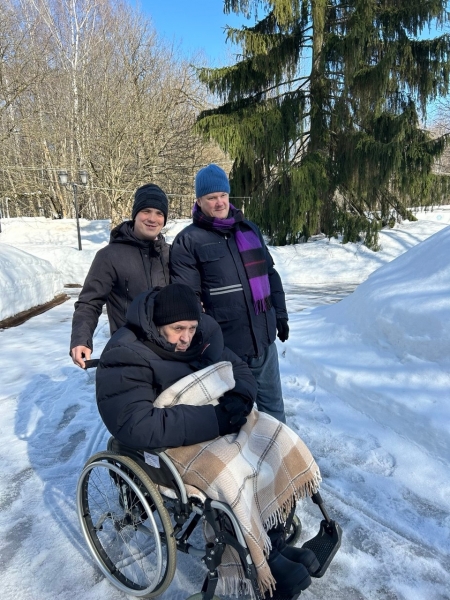 Ребята из Зюзино помогают друзьям выйти на улицу, разговаривают и дышат вместе свежим воздухом, наслаждаются солнцем и просто приятно проводят время в парке.